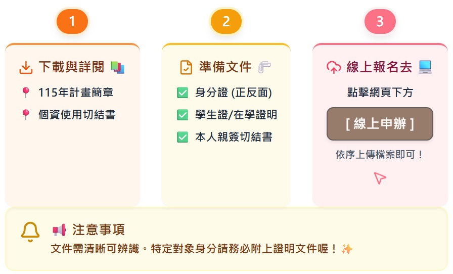 (三)每名工讀生進用以一次為限,不得重覆進用,曾參加新竹市政府114年度(含)以前之青年學生公部門暑期工讀計畫,並經錄取工讀者,不得報名)。